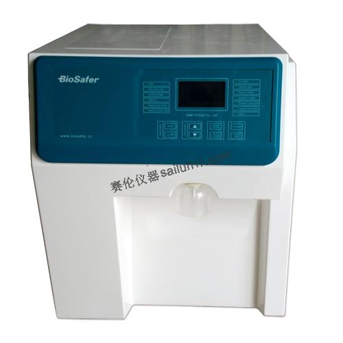 用于标准级实验、高纯标准溶液配制、定量分析、血液检测、毒性检测、缓冲溶液配制、原子吸收/发射光谱、液相色谱、气象色谱等。一、Biosafer-40DA纯水机工艺特点依照“层层保护,逐级过滤”的设计理念,根据源水状况配置预处理,针对性更强;灵活选用单级或双级反渗透工艺更合理,使用更经济;美国陶氏低压RO膜,脱盐率≥98%,系统自动清洗、手动冲洗结合使用,保证长期高效进行;德国贺利氏Heraues双波长紫外灯和美国AquaBest消解仪,可以高效地杀菌和降解有机物;罗门哈斯Rohm Haas核子级深处理抛光混床纯化和超纯单元水水质电阻率和达到18.25ΜΩ·cm@25℃;根据使用要求选配进口超滤膜、脱气膜彻底滤除热源、可溶性气体、水质超纯净,选配高精度终端微孔过滤器。二、Biosafer-40DA纯水机特色功能1. 操作模式:微电脑控制、触摸式按键、一键式操作。2. 系统监控:四行液晶时时显示产水水质参数、温度、产水时间、报警故障显示。3. 安全保障:水电隔离设计、缺水、断电保护、纯化柱、超纯化柱等耗材更换提醒、定时循环保证水质、紫外灯状态报警、纯水、超纯水取水口均有防尘罩。4. 功能设定:0-999分钟时间设定、定时定量取水、密码保护。5. 扩展功能:增设分级取水端口、232接口、液位自控、TOC在线监测仪、脚踏开关、活动取水臂实现远程取水6. 机箱为ABS工程塑料永不生锈、美观大方。三、Biosafer-40DA纯水机工作条件1. 去离子水、蒸馏水、反渗透纯水;温度:4~40℃; 源水压力:0-3Kg/cm2;电源:220V 50Hz;功率:30~50W2. 制水量(25℃):40L/h3. 外形尺寸长×宽×高: 370×545×490mm4. 备注:用户对某些指标有特殊要求时(如:总磷,氨氮,硝酸根)可定制特殊机型四、Biosafer-40DA纯水机技术参数1. 水源:纯水2. 产水量:40L/h3. 超纯水水质:电阻率18.25ΜΩ·cm@25℃,水质标准优于中国国家实验室用水(GB6682-2008)一级水标准4. 取水流速:1.5-2.5L/min5. 热源:/6. TOC:<10ppb7. 微生物:﹤1cfu/ml8. 微颗粒:(大于0.2μm)含量:﹤1/ml9. 配置:/